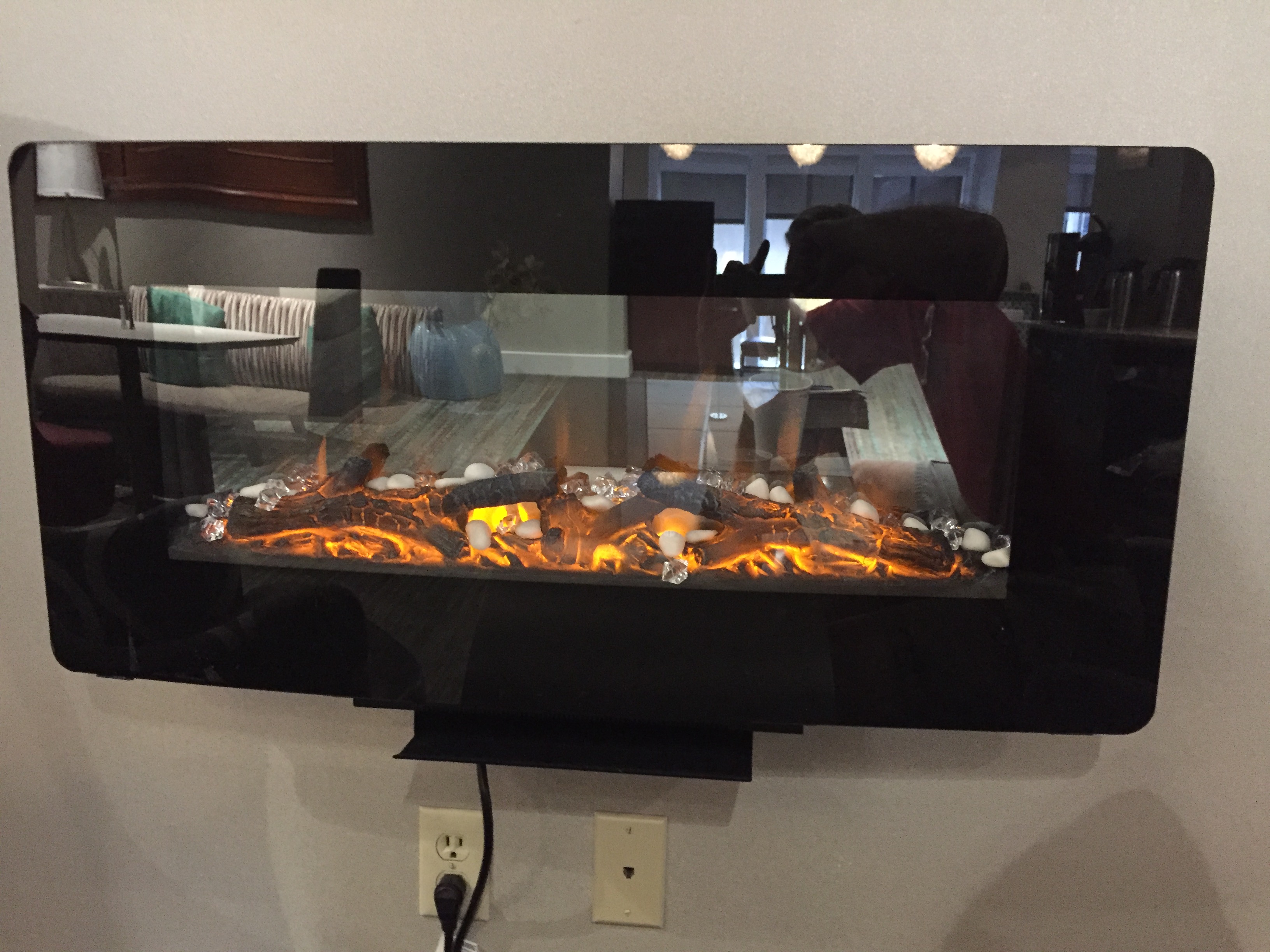 The next morning I got up, went downstairs to have breakfast, and as I was eating I spotted a cozy little nook by a pretend fireplace,