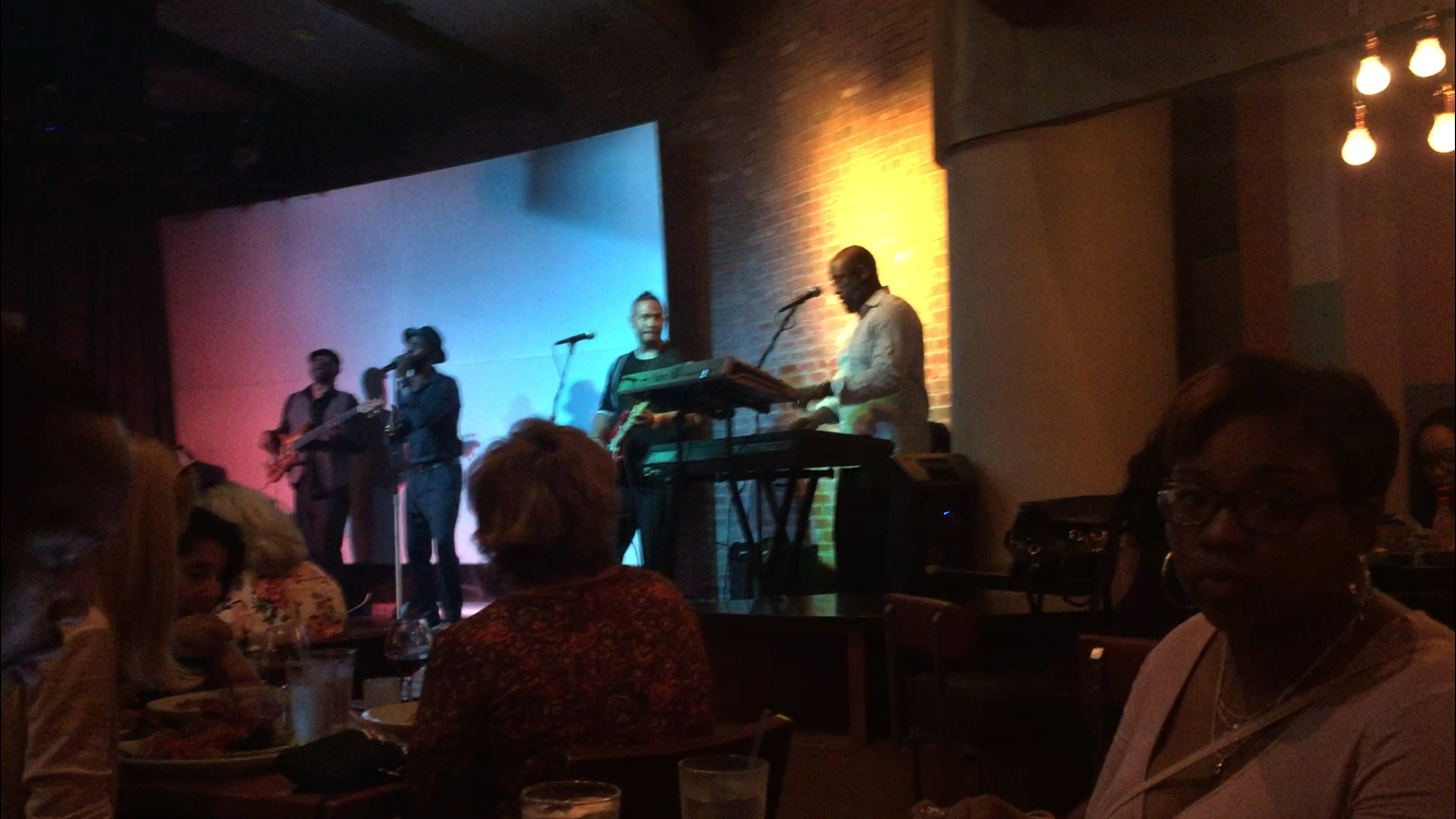The Assistant Manager at my hotel recommended it so I went in and ordered up a mess of greens, some shrimp and grits, and some green fried tomatoes. It was so delicious and on top of that there was a good band playing live.